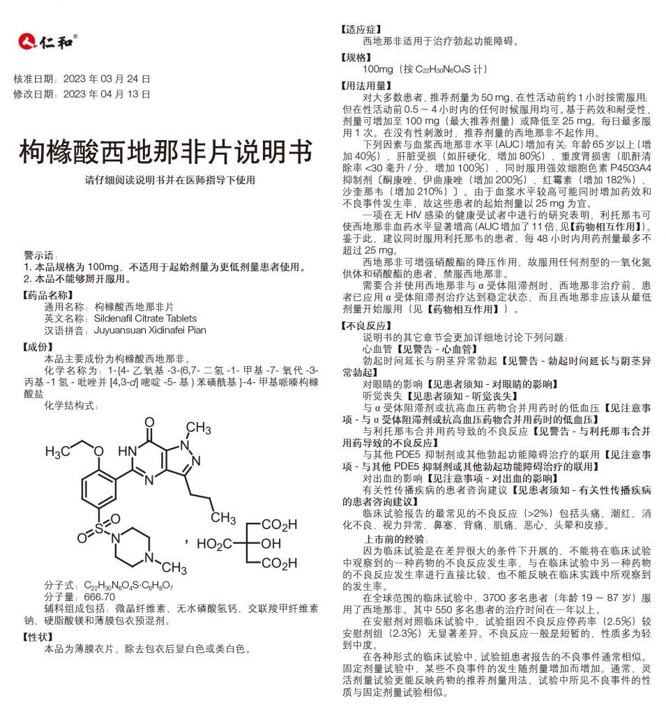 枸櫞酸西地那非片(50mg/片 *5片/板*1板/盒)