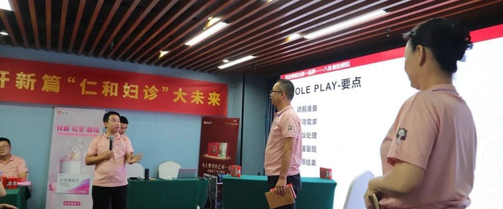 20日晚上,四川醫潤衛民的專業老師郭老師,對第三終端婦診專科市場分析、仁和品牌婦科布局、對婦科領域常見“經帶胎產雜”病理和臨床應用分析和產品推廣之路進行分享;之后讓各小組學員結合當日學習內容進行模擬演練,以鞏固學習內容。