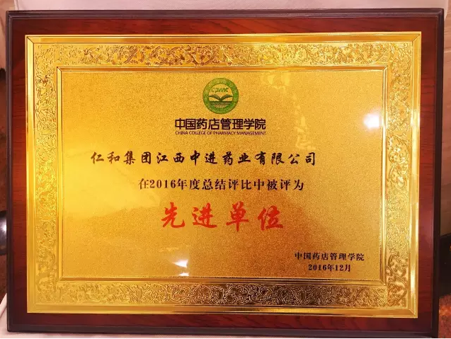 在本次會上,江西中進藥業有限公司被評為在2016年度“先進單位”稱號。