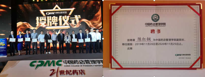 2019年11月26日,中國藥店管理學院授牌儀式在廣東順德隆重舉行,中進藥業總經理陳紅鋼受邀出席,并再次被聘為“中國藥店管理學院副院長”。