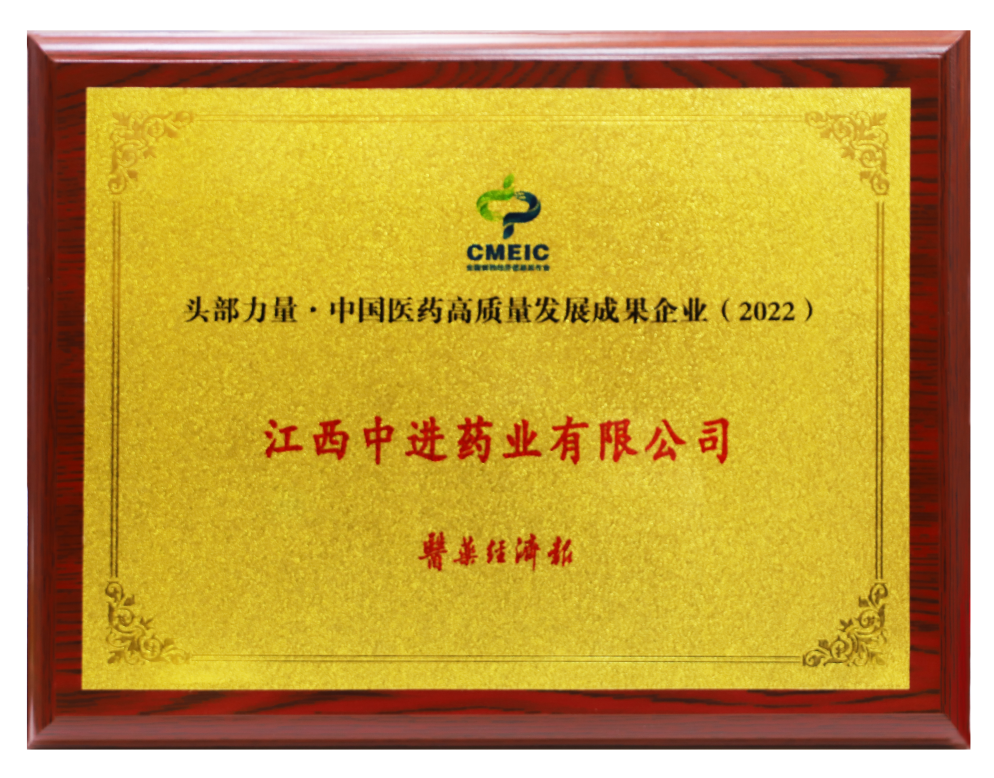 中進藥業(yè)再次榮獲頭部力量 · 中國醫(yī)藥高質(zhì)量發(fā)展成果企業(yè)及 成果品牌兩項大獎